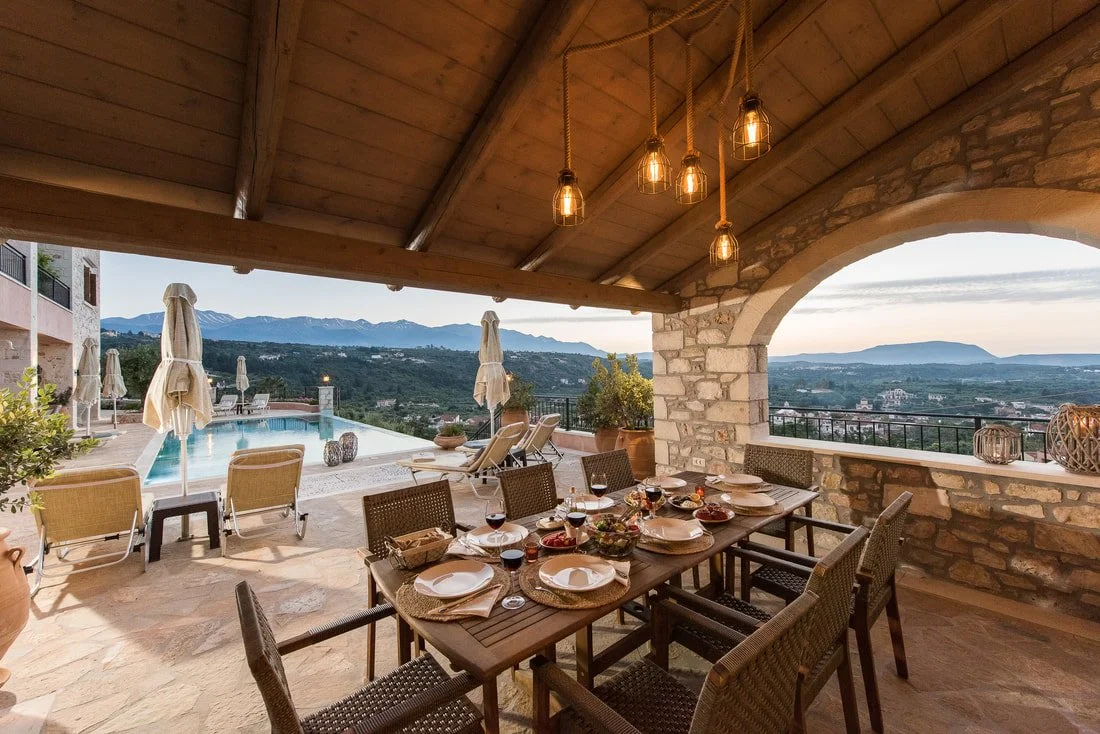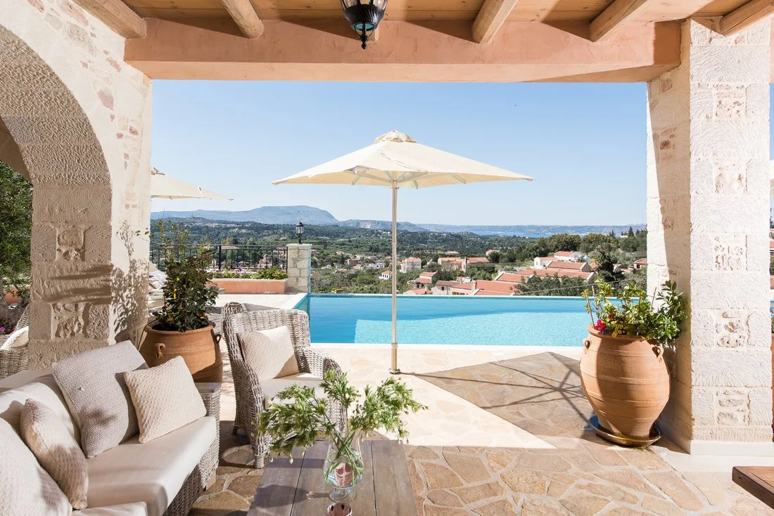 Our home for the week is a stunning residence perched high on a hill, offering vast views across Crete. The property features expansive gardens, a swimming pool, and multiple shared spaces designed for comfort and contemplation.